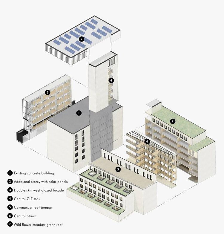 The Green House’s redevelopment is part of a larger European trend that’s just now making its way to North America, as cities densify and implement stricter embodied carbon emissions standards. Aufstockung - the German term for adding one or more floors to an existing structure (a vertical extension) is a surprisingly common type of development in Switzerland, Germany, Belgium and beyond, and has been for generations.