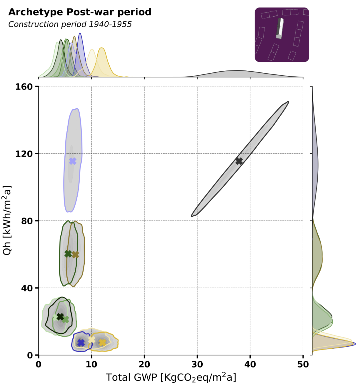A 2025 Swiss study on renovation vs. replacement strategies (for <6 storey blocks of flats across different construction time periods) studied the variation in GHG emissions across multiple scenarios. Regardless of the building type, each one showed that achieving a 95% reduction in heating energy required a higher total GWP compared to other archetypes - for example, simply replacing the natural gas heating system with a heat pump.